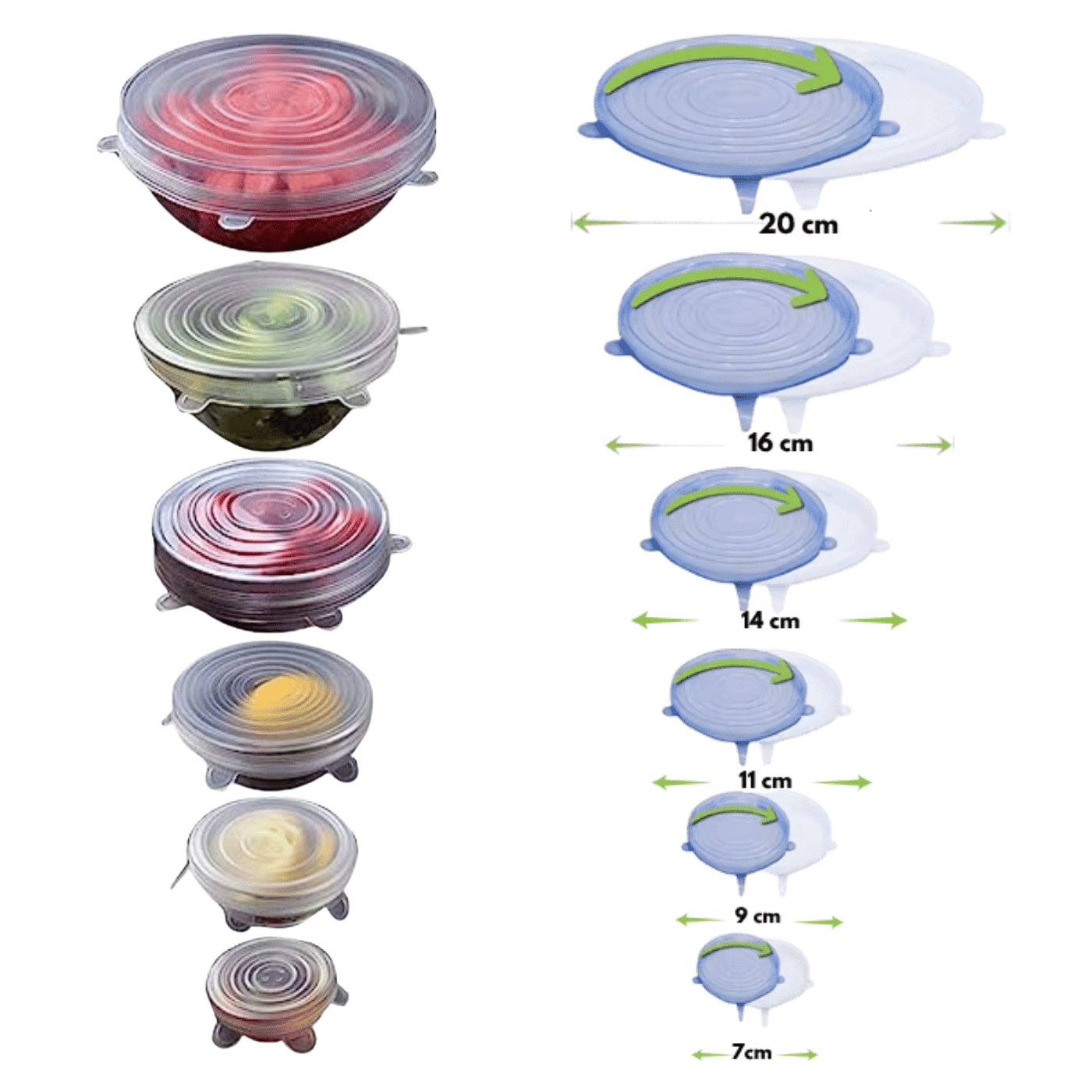 Ideal für Schüsseln, Gläser, Becher, Dosen oder angebrochene Lebensmittel wie Früchte oder Gemüse.