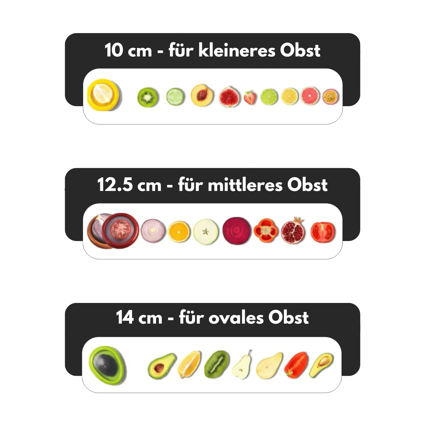 1. Wähle die passende Grösse für dein angeschnittenes Obst oder Gemüse.