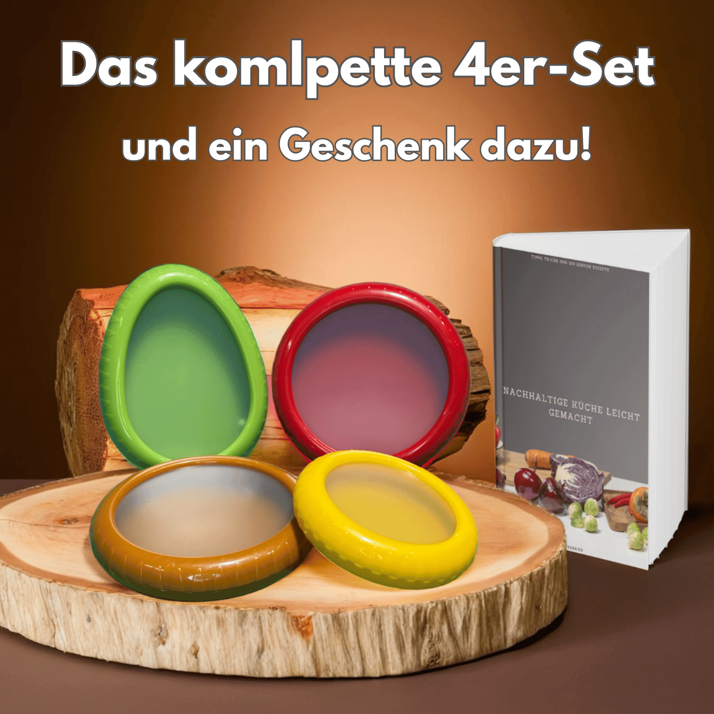 Das 4er-Set Brifresh-Pods bietet dir alles, was du für die umweltfreundliche Aufbewahrung deiner angeschnittenen Lebensmittel brauchst. Hier sind alle vier Farben und Grössen enthalten.